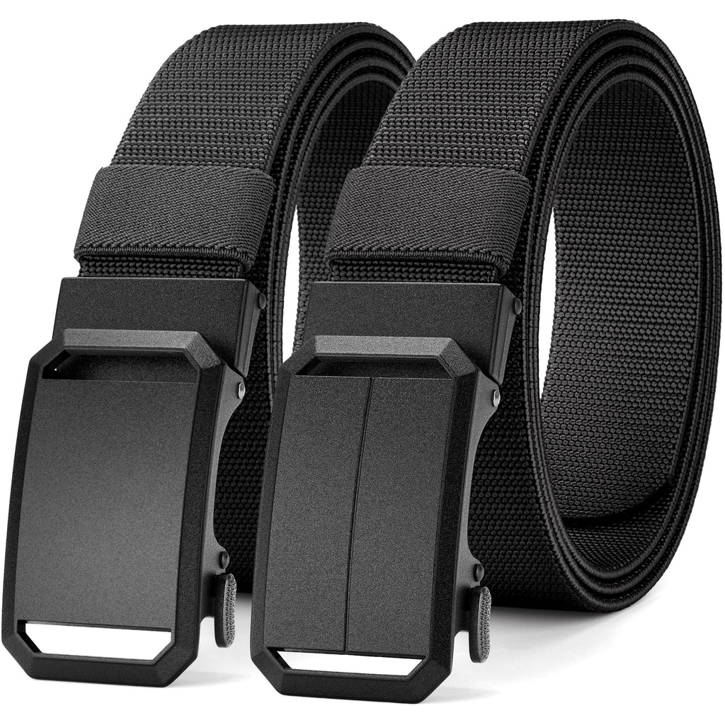 Men's 2Pack Nylon Ratchet Belts, 1.38" Casual Web Click Belt for Jeans, Business Dress, Adjustable Trim to Fit