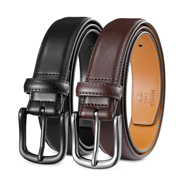 Men's Leather Dress Belt 2Pack, Handmade, Genuine Leather, Fashion & Classic Designs for Work Business and Casual